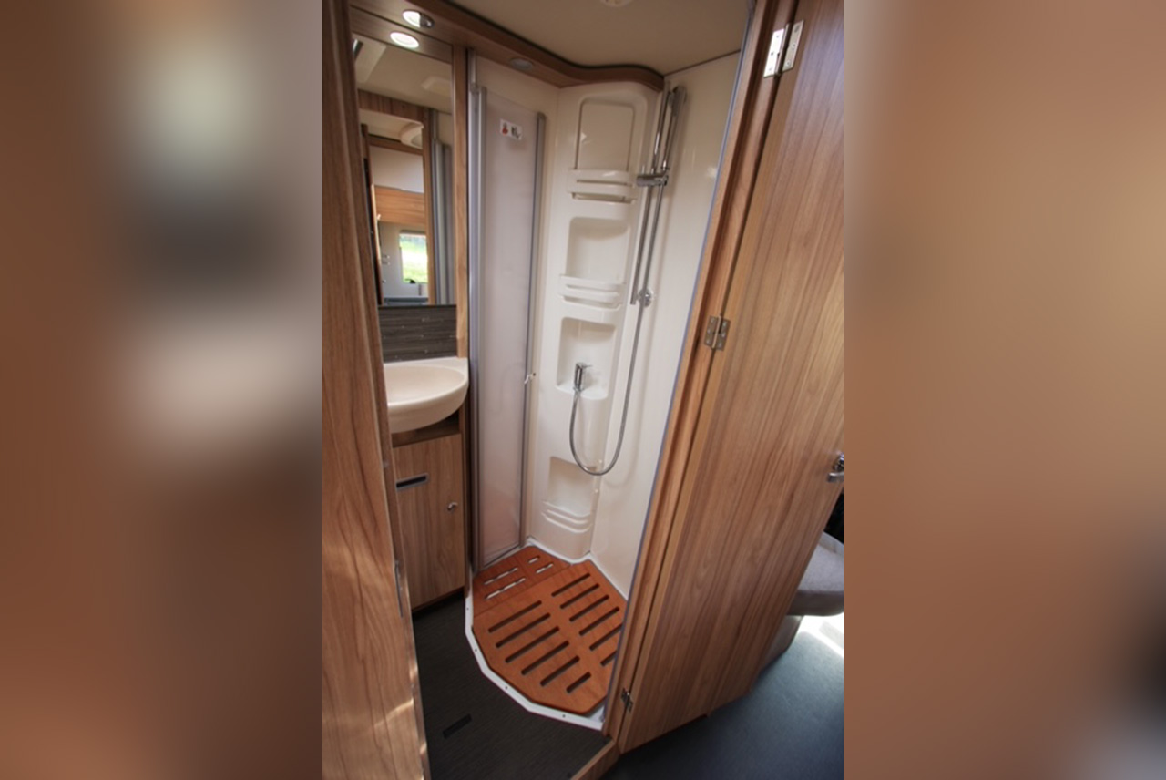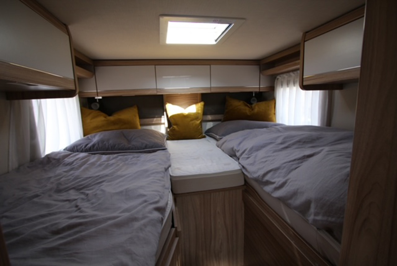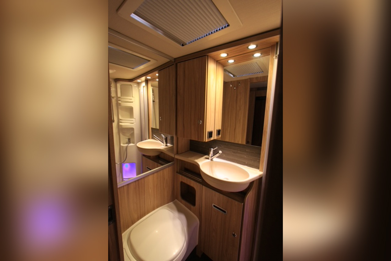 Das große Doppelbett mit dem Tellerfederrost garantiert erholsame Nächte. Duschen könnt ihr in- und außerhalb des Mobils. Der Küchenblock ist bereits mit Geschirr bestückt. In der riesigen Heckgarage finden neben eurer Ausrüstung auch noch zwei Fahrräder (zum Beispiel unsere E-Bikes – gegen Aufpreis –) platz. Für weitere Fahrräder bzw. alternativ könnt ihr auch einen Heckfahrradträger anmieten.